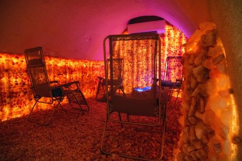 Découvrez un cadre étonnant et unique dans la cave de sel, et respirez l'air pur en profitant de votre soin d'halothérapie, L'inhalation de l'air salin (sel de grande qualité extrait de la mine de sel de Klodawa en Pologne) naturellement gorgé d'oligo-éléments, de sels minéraux et d'ions négatifs, vous procure des bienfaits sensibles sur les voies respiratoires et les troubles liés à la fatigue et au stress. Les effet sont immédiats, retour au calme, maîtrise des émotions et bien-être assuré.